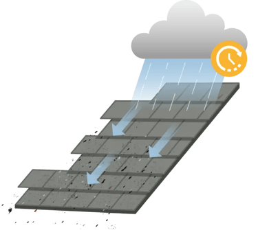 Le pan Nord d’une toiture est le premier touché par l’apparition de mousses et de saleté. En effet, c’est le pan qui est le moins exposé au soleil ce qui favorise le développement de mousses et d’humidité.